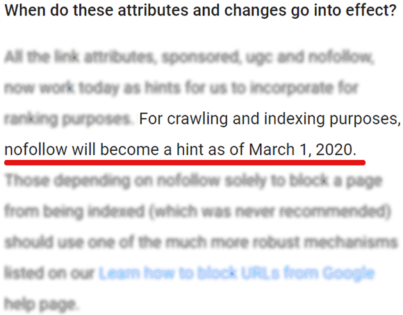 其实在2020年3月时,谷歌官宣过,它将nofollow属性视为一个“提示”,而非“指令”。