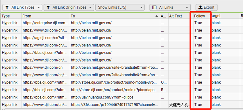 如果想要查看整站页面中,有多少链接是Nofollow的,就需要使用到页面爬虫类的工具。