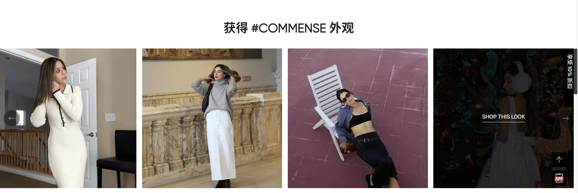此外,Commense在首页设置了社交平台同款专区#Commense,进站用户可以根据KOL的穿搭,在网站上一键下单,轻松get博主同款。