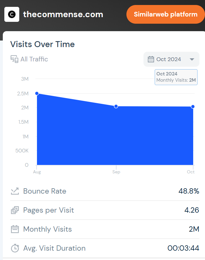 如今,Commense独立站的每月访问总量已经超过了200万,而今年1月份的访问总量仅70万,流量涨幅超过185%,展现出品牌强劲的发展势头以及市场吸引力。