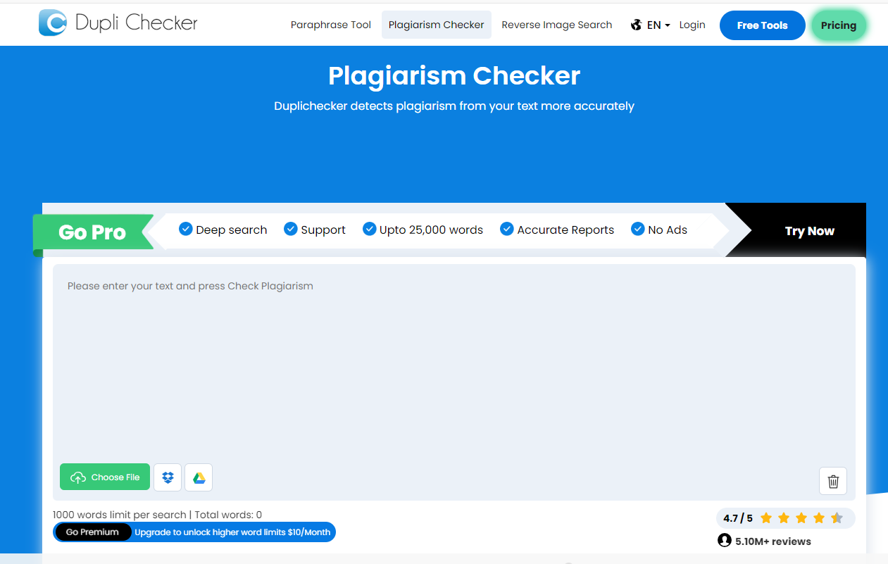 Duplichecker免费版本每次可查询1000个单词,超过也需要购买付费。这两个工具具体功能我就不说了,大家自己去试用。