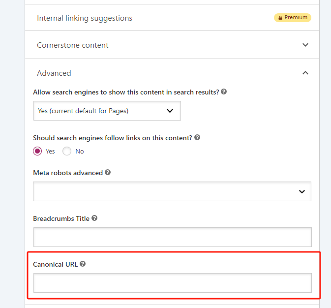 通过在HTML头部使用<link rel=”canonical” href=”正确的页面URL”>,可以告诉搜索引擎哪个版本的页面是首选版本。如果你的网站使用Wordpress做的,在SEO插件中都会有这个功能。例如Yoast seo。