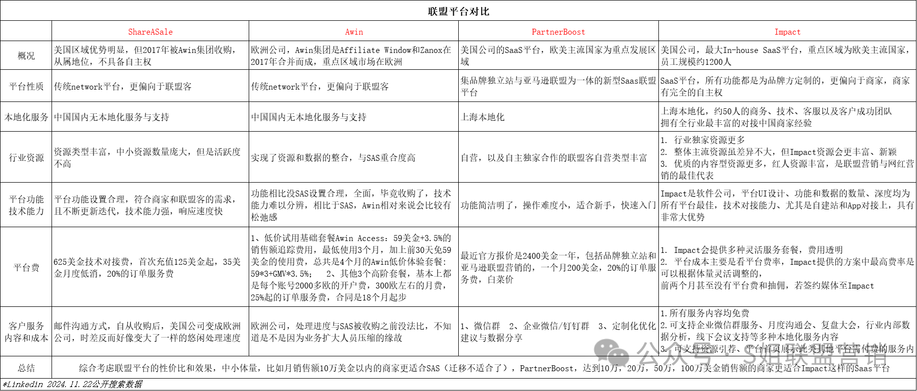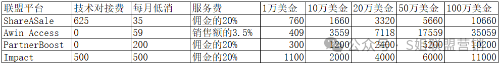 从费用方面对联盟平台ShareASale,Awin, PartnerBoost和Impact做了个大致预估,方便大家进行对比,快速抉择新联盟平台。
