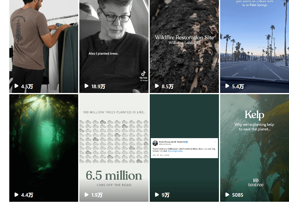 当宣传某个理念而不仅仅是一个品类产品的时候,就可以迸发出来无尽的内容idea。下面是tentree 的ins账号的视频,https://www.instagram.com/tentree/reels/