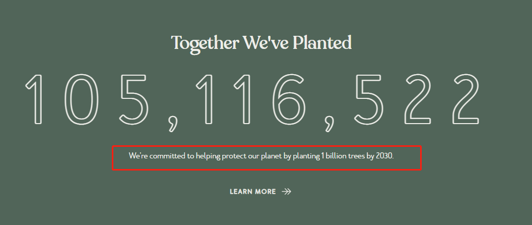网站首页的第三栏往下完全都是宣传Sustainability 和环保这块做的努力和他们的理念,这对于一个DTC品牌来说第一次见,可能可以跟他拼一下的就是patagonia 这个环保品牌。强烈建议大家看看官网 https://www.tentree.com/