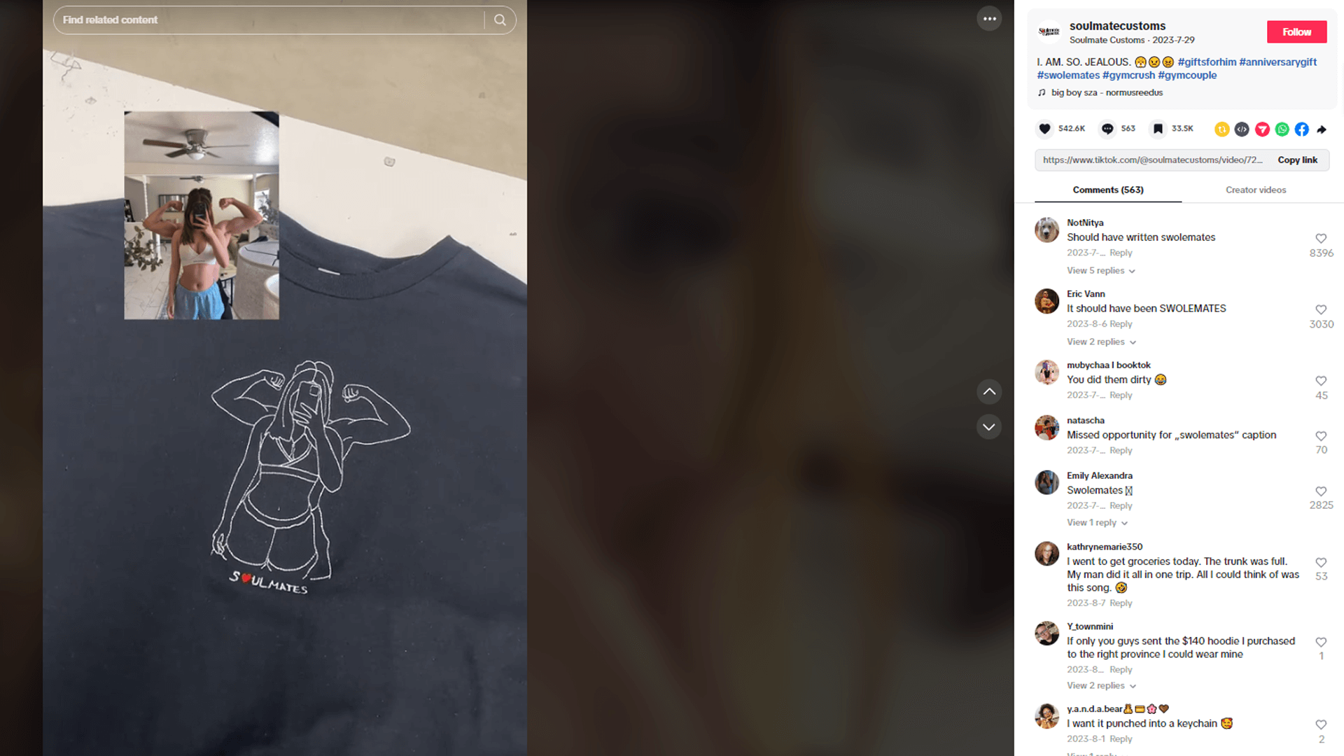 Soulmate Customs 是一个专注于制作以灵魂伴侣为主题的定制刺绣服装的品牌。品牌创始人Keida Dervishi是一位05后女孩,通过在TikTok平台上发布创新的内容吸引大量流量,并成功将中式刺绣的魅力与外国市场结合,实现销售增长。