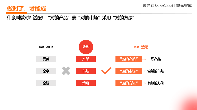 什么叫做对?适配!也就是“对的产品”去“对的市场”采用“对的方法”。