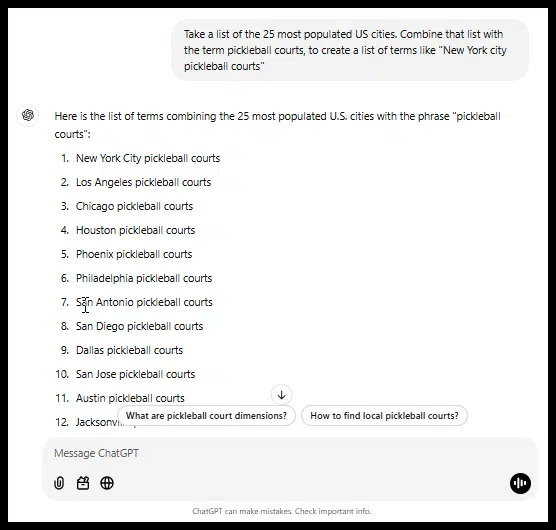 在获得了话题方向后,下一步是将其转化为具体的关键词列表。虽然ChatGPT无法直接提供搜索量或难度数据,但它可以帮助生成初步的“种子关键词”,作为进一步关键词分析的基础。