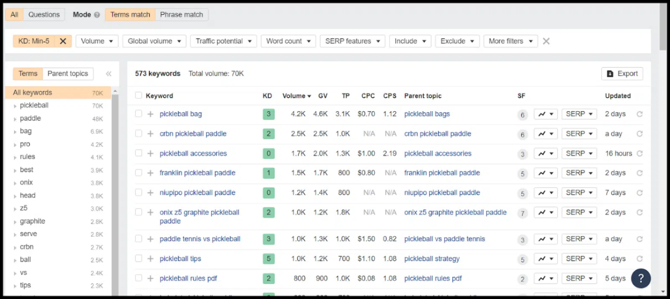 接下来,可以将这些关键词导入专业工具(如Ahrefs或Google Keyword Planner)进一步分析关键词的搜索量、竞争难度等数据。