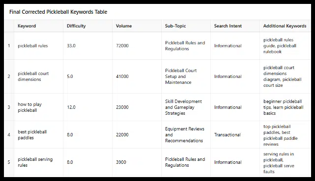 【提示词:生成匹克球相关话题的种子关键词列表。】