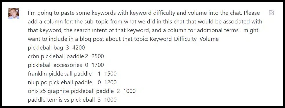 传统的关键词工具一个显著问题是,大家都在使用,导致你和竞争对手可能瞄准了同样的关键词,竞争激烈。而ChatGPT通过正确的提示词,可以帮助你找到一些未被充分挖掘的关键词领域。