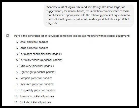 ChatGPT还可以帮助扩展关键词列表。例如,结合地理位置、尺寸等修饰词,生成更丰富的关键词组合。