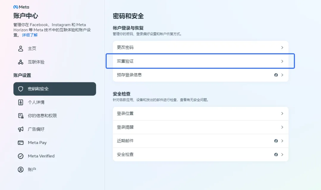 广告主可以登录BM后,在【业务设置】-【业务信息】-【双重验证】中进行核查,验证⼈员的范围建议选择【所有⼈】