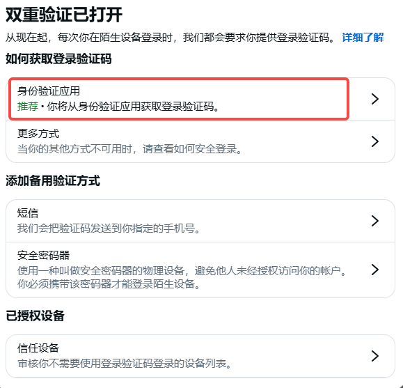 按照需要选择要添加的安全验证方式,并按屏幕上的说明操作。