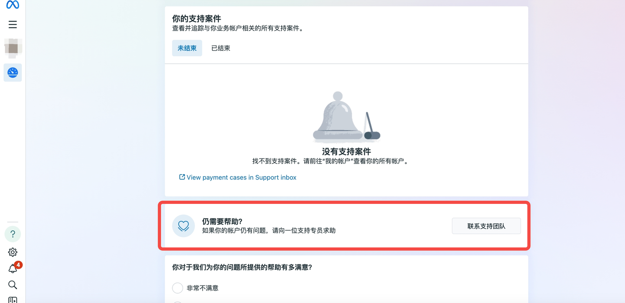 进入自己的业务支持中心(即原本的账户内容品质),在仍需要帮助中点击联系支持团队,找到Meta在线客服CC。
