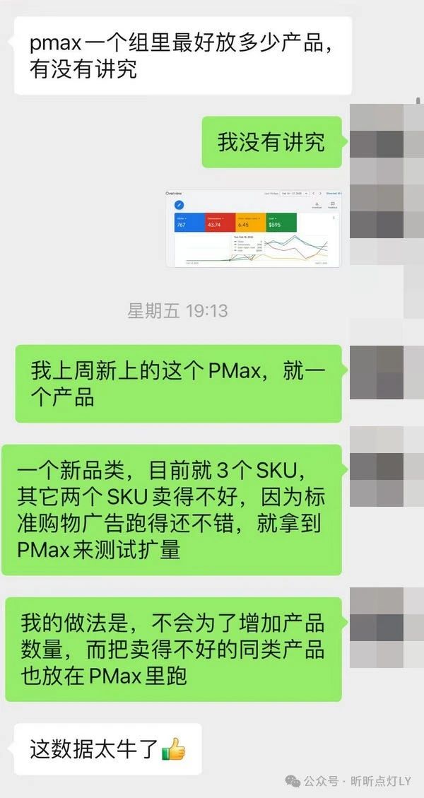想借此说的是,一个组放多少产品,对PMax的效果影响可能并不大。重要的是,深入理解那些真正影响PMax效果的关键因素,并沉下心来做好基础优化工作,这是提升PMax投放效果的核心。