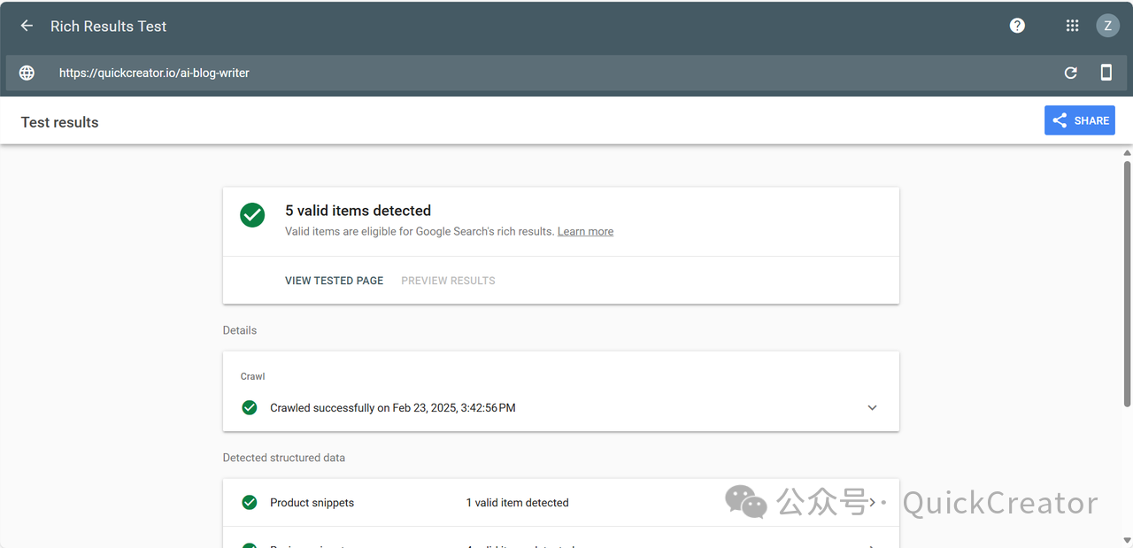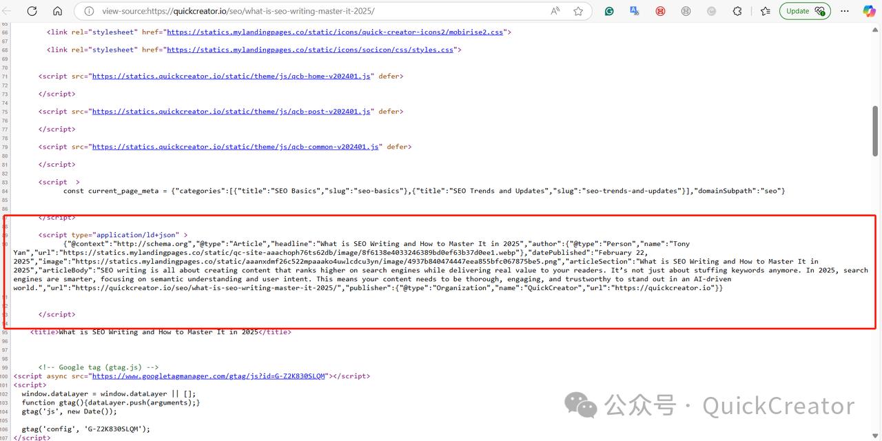 例如,以下是利用QuickCreator生成的博客中结构化标记内容的示例: