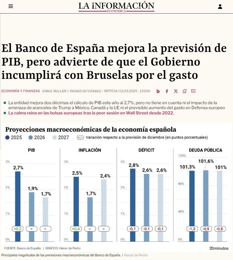 据西班牙央行3月11日发布的最新经济展望报告,该国2025年GDP增速预期较此前上调0.2个百分点至2.7%。