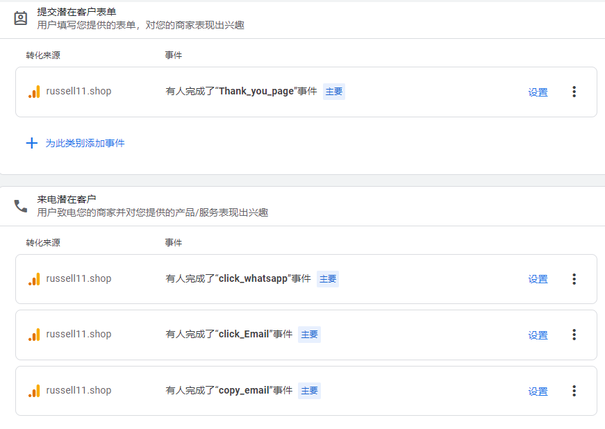 再导入时我还可以直接添加多个转化类别,比如客户点击Whtsapp、Email、Copy Email等操作,如下:
