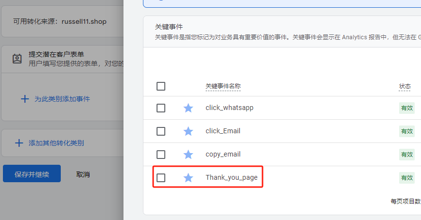 这里就可以看到,我在GA4设置好的事件了,进行选择就可以了。