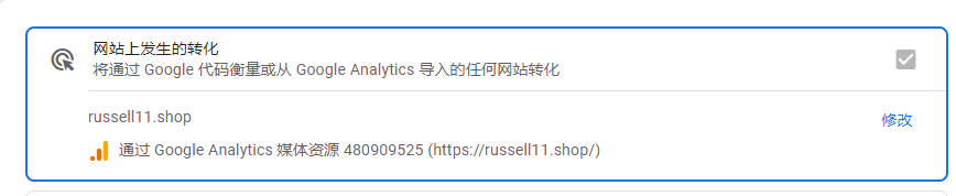 这里同样选择网站上发生的转化,点击修改