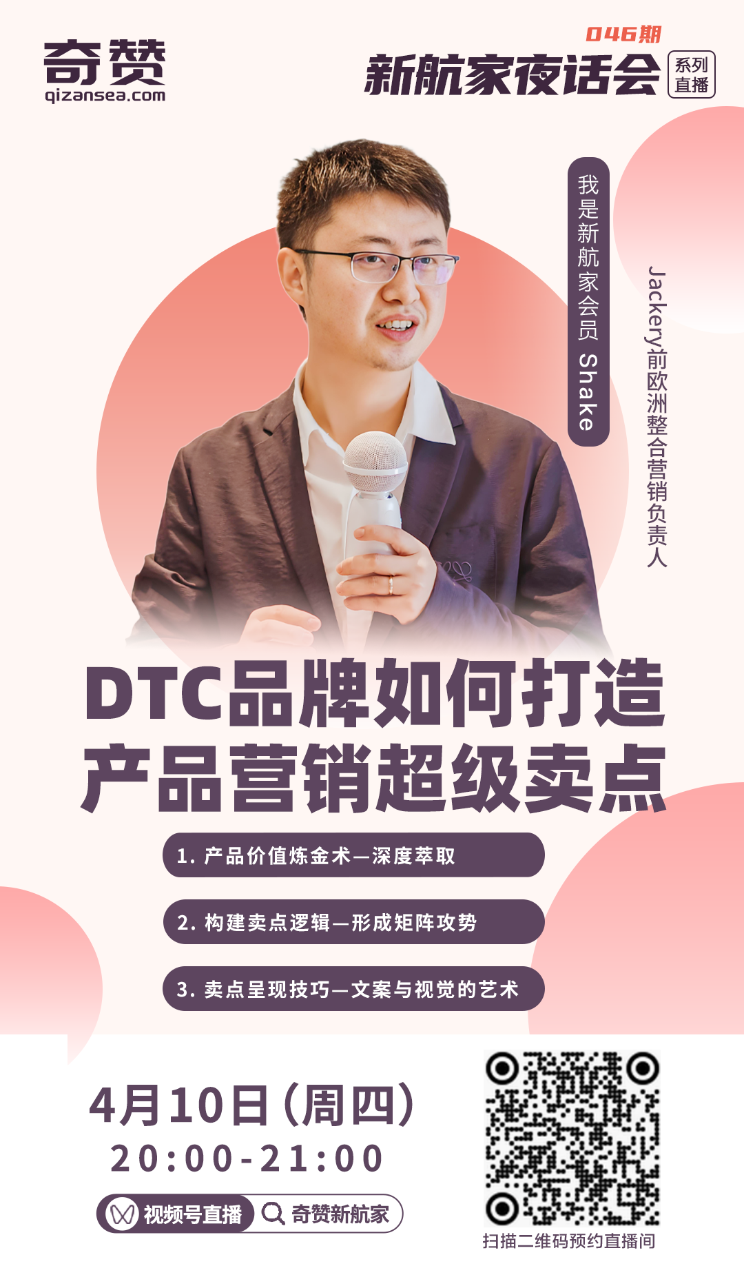 奇赞首页奇赞新航家新航家夜话会 DTC品牌如何打造产品营销超级卖点【新航家夜话会046期】 奇赞新航家 2025.04.08 阅读 817 分享嘉宾:Shake Jackery前欧洲整合营销负责人 分享时间:5月13日(周二)20:00 直播地址:视频号:奇赞新航家 分享主题:如何打造产品营销超级卖点 1. 产品价值炼金术—深度萃取 2. 构建卖点逻辑—形成矩阵攻势 3. 卖点呈现技巧—文案与视觉的艺术 直播回放 剩余内容需解锁后查看 您需要付费解锁才能查看当前内容 开通会员 新航家操盘手会员免费新航家CEO俱乐部免费 已付费?登录 或 刷新 本文由 @奇赞新航家 原创发布于奇赞,未经许可,禁止转载、采集。 该文观点仅代表作者本人,奇赞平台仅提供信息存储空间服务。 赞 (1) 0 0 生成海报 奇赞新航家官方 关注私信 298 文章 0 评论 33 问题 150 粉丝 品牌化出海营销知识社群俱乐部! 为你推荐 新航家夜话会 如何做好有效邮件营销的第一步 | 新航家夜话会042期 分享嘉宾:王华Cain 邮件营销资深技术流操盘手 分享主题:如何做好有效邮件营销的第一步 1️⃣ 邮件认证与账户架构 2… 奇赞新航家 2025.03.11 新航家夜话会 奇赞夜话会021期|品牌独立站-回归用户体验运营才能重获增量增长 奇赞夜话会 021期 本期主题:品牌独立站-回归用户体验运营才能重获增量增长 嘉宾:Risa 瑞萨信息咨询创始人 前Ul… 奇赞新航家 2024.01.18 新航家夜话会 奇赞夜话会 002期|从产品模式到品牌模式,“升级”or“转型”?(课件) 本期主题源于会员群会员们的交流,特此邀请专业操盘手深入交流,期待大家互动的精彩见解。 本期嘉宾:Abby Deco德科创… 奇赞新航家 2023.08.09 新航家夜话会 奇赞夜话会012期|独立站SEO竞争对手分析(课件) 第1节:竞争对手分析的意义 第2节:独立站分析插件及工具 第3节:如何找到优秀的竞争对手独立站 第4节:我们需要分析竞争… 奇赞新航家 2023.11.01 新航家夜话会 谷歌广告ROI下滑10种可能性 | 新航家夜话会044期 分享嘉宾:梁京 DTC品牌谷歌广告资深优化师 分享主题:谷歌广告ROI下滑10种可能性 1️⃣ 广告营销漏斗底层逻辑 2… 奇赞新航家 2025.03.24 Trustpilot 奇赞夜话会017期|Trustpilot:海外口碑管理和营销的正确打开方式 奇赞夜话会 017期 本期主题:海外口碑管理和营销的正确打开方式 分享嘉宾:Rebecca Han Trustpilot… 奇赞新航家 2023.12.19 发表回复 请登录后评论...登录后才能评论 提交