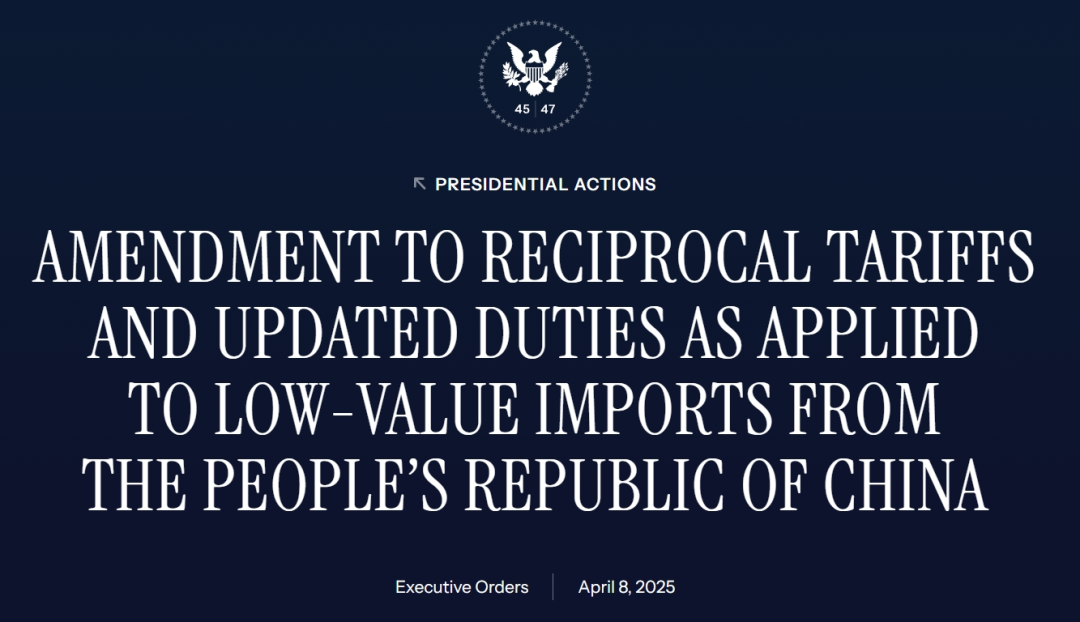 相较于“对等关税”上调至 104% 所带来的震撼,另一项更直接影响跨境电商卖家的政策也有了新调整。白宫于同日宣布,将对原本享有 800 美元以下免税资格的小额商品征税政策进行新调整,并设定分阶段执行的新税率体系。