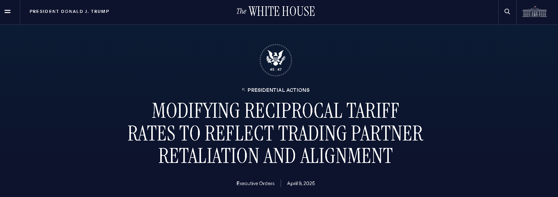 美国东部时间 4 月 9 日凌晨,特朗普在其个人社交平台宣布对原产于中国的进口商品关税提高到 125% 且立即生效。