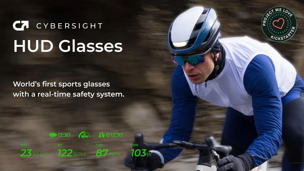 CYBERSIGHT是一款集成实时安全系统的运动眼镜,采用39克超轻框架设计,支持8小时连续使用,通过蓝牙5.3连接兼容BLE传感器与智能设备。设备搭载1500尼特单色HUD显示屏,可同步显示运动数据、导航信息及环境监测结果,结合AI算法提供实时安全预警与骑行策略建议。其安全系统整合道路车辆接近检测(需搭配Magicshine雷达尾灯)、身体姿态分析及紧急状态识别功能,通过触觉反馈与视觉警示提升运动安全性。设备采用IP54防水防尘结构,适配偏光与光致变色镜片,支持iOS/Android多平台数据同步。