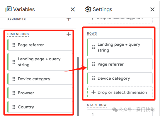 本示例中,我添加了Landing page + query, Page referrer, Device category三个维度。