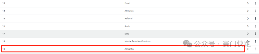 保存设置后,就会在最下方找到我们新建的“AI Traffic”流量渠道。