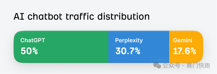 而且,98%的AI流量来自于3个平台:ChatGPT,Perplexity和Gemini,其中ChatGPT占到了50%。