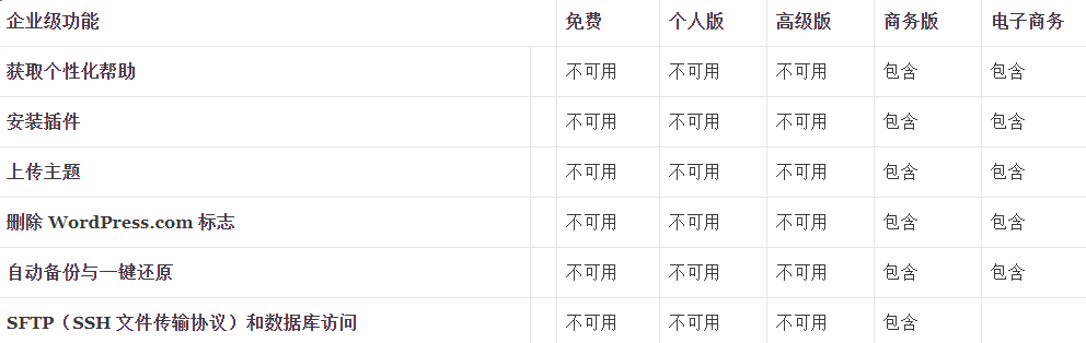 WordPress.com上直接开通账号,则需要承担更多的成本,价格如下:
