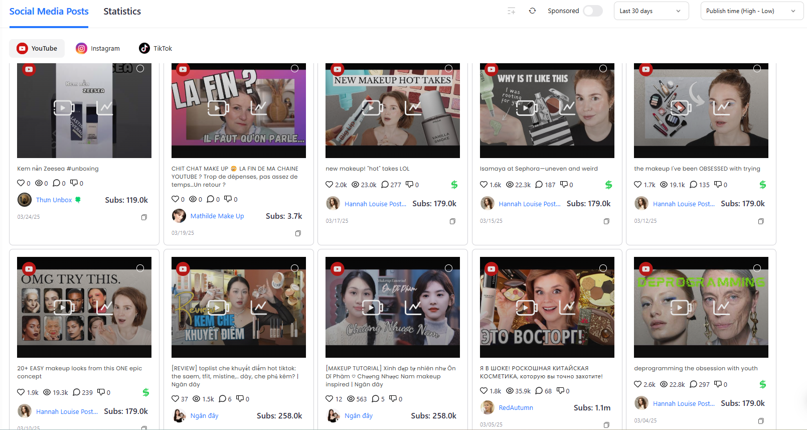 通过ScoialBook后台的【竞品监听】功能,我们发现ZEESEA合作的日本红人不在少数。除了传统的美妆红人以外,还有职场博主,甚至家庭主妇等。