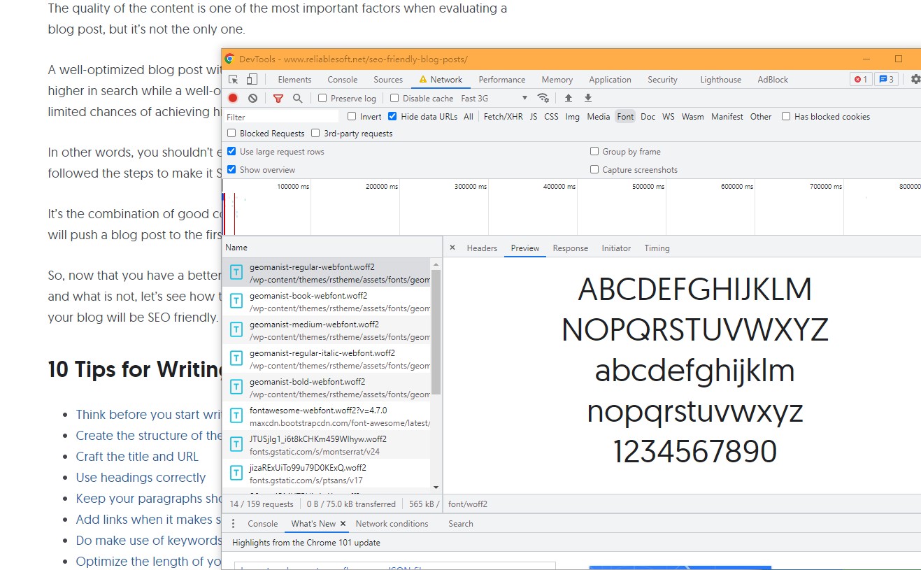 打开Network,点击Font (网页的文件字体就都存储在这里);