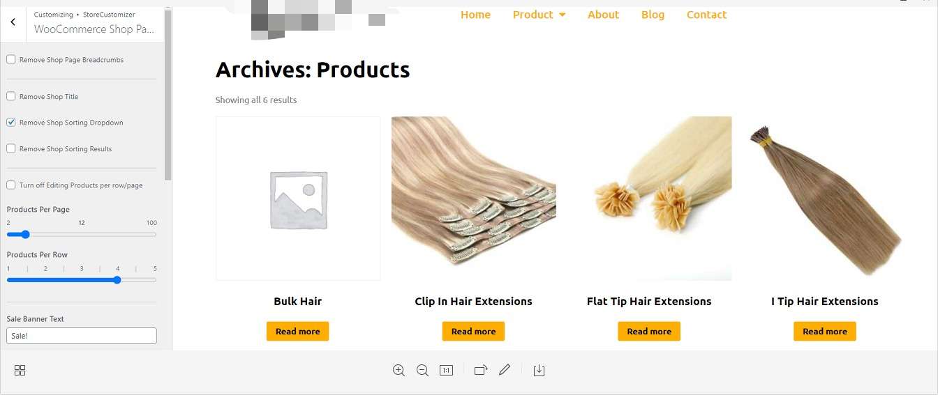 WordPress后台找到外观appearance,然后打开自定义,就可以对WooCommerce产品catalog页面展示形式进行设置。