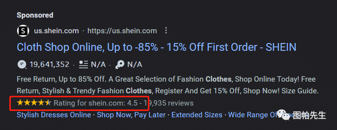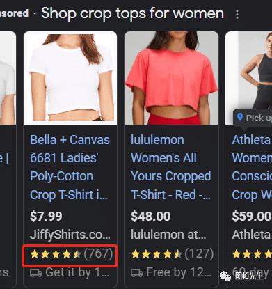 相信大家在看谷歌购物广告的时候,都会刷到有些网站的广告是有星级评分的: