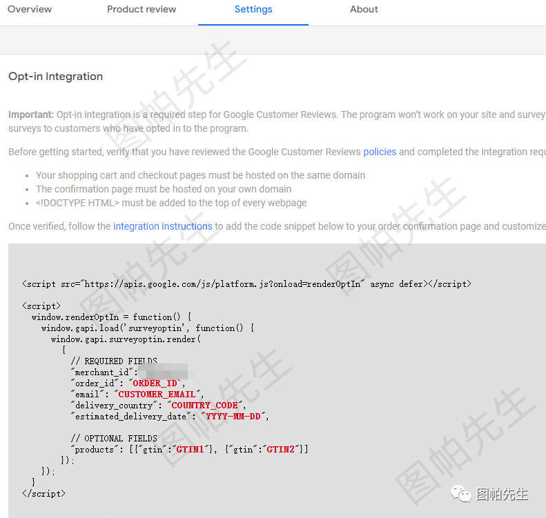 要有评分内容,第一步就是收集。首先介绍下官方接口:GMC的顾客评论customer reviews