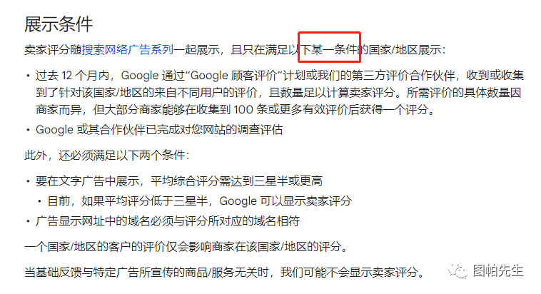 根据谷歌的官方资料:https://support.google.com/google-ads/answer/2375474?hl=zh-Hans,细分下来对卖家评分有好几个要求。