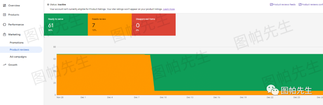 满足条件后,在GMC的marketing就能看到product reviews,可以在里面上传review feed