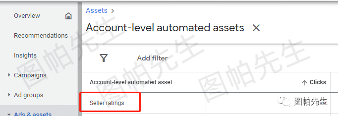 还是进入谷歌搜索广告中的assets,右上角点击Account-level automated assets