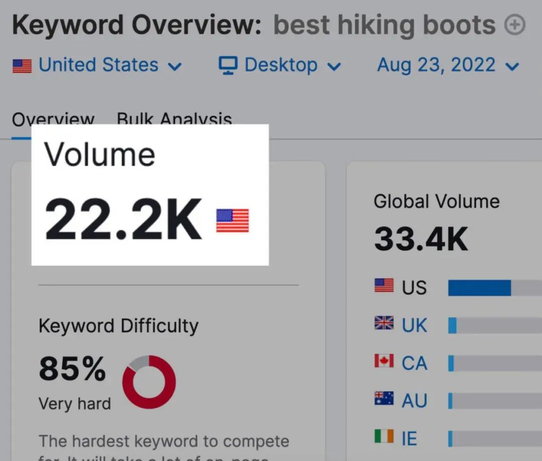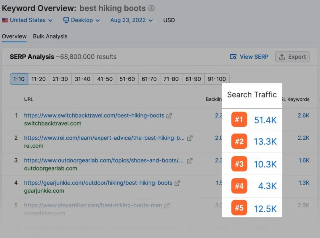 举个例子,假如每个月有22,000人搜索某个产品或者服务,而你的网站在Google的搜索词结果中排名第一,那么,每个月都至少有几千个目标受众通过自然搜索访问你的网站。