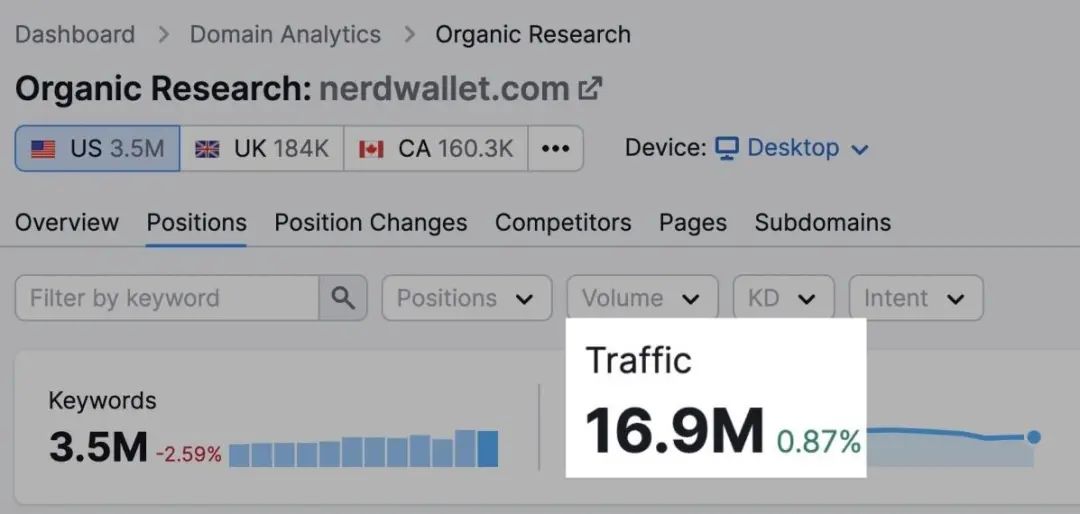 以个人理财网站NerdWallet为例。SEO每个月为这个网站带来了1690万位访问者。
