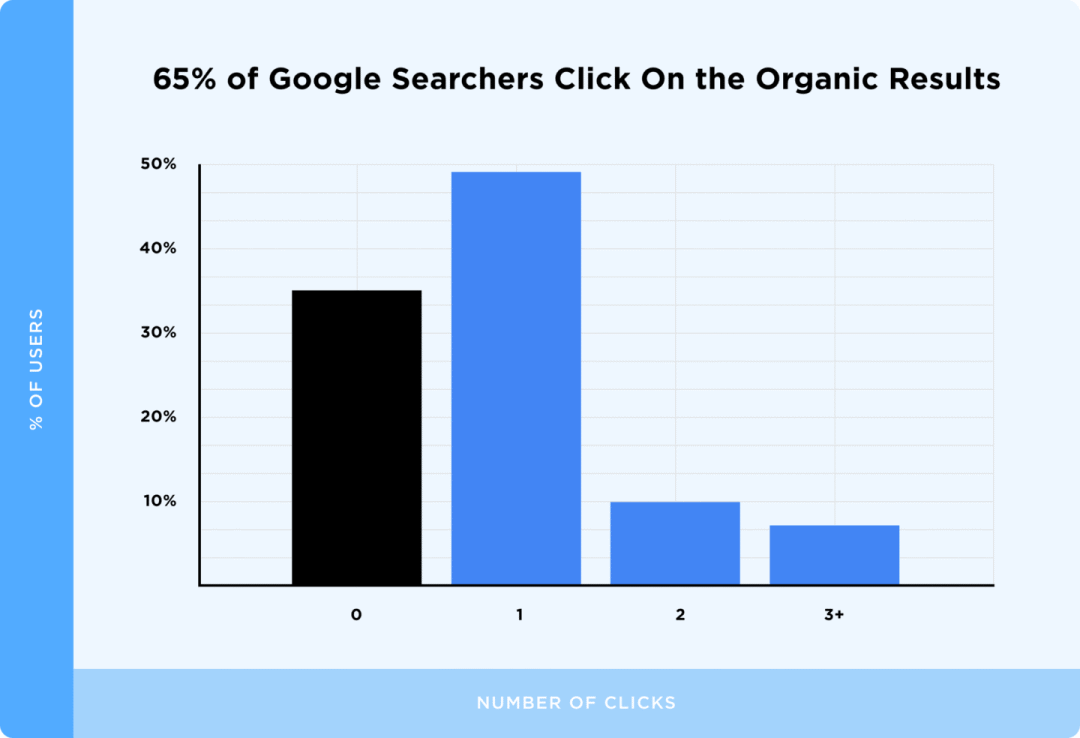 在搜索结果页面上排名靠前意味着你的网站将收获大量的免费点击。毕竟,65%的谷歌用户点击的是自然搜索结果(即非广告网页)。