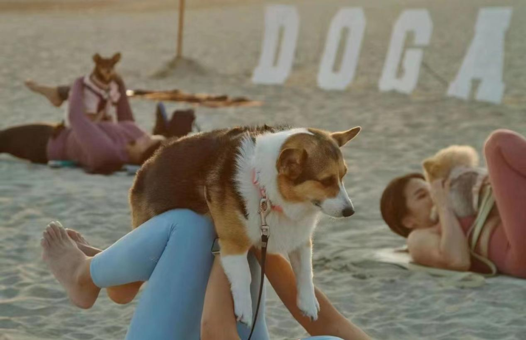 “宠物瑜伽”即和自己的小狗一起做瑜伽。和双人瑜伽相似,许多经过训练的狗狗会在瑜伽锻炼姿势中和主人“打配合”,最终呈现效果非常亲密可爱,也能收获不少流量和关注度。