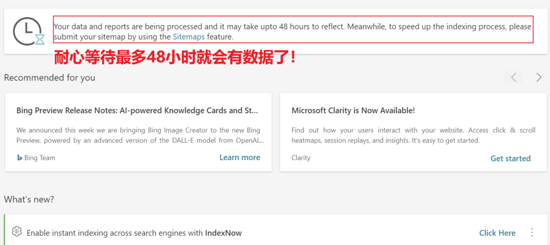 提交成功后,Bing会在一段时间内自动抓取网站sitemap中的所有网页,并将其加入其索引中。在这个过程中,你可以在Bing Webmaster Tools中查看索引状态以及任何错误或警告的信息。