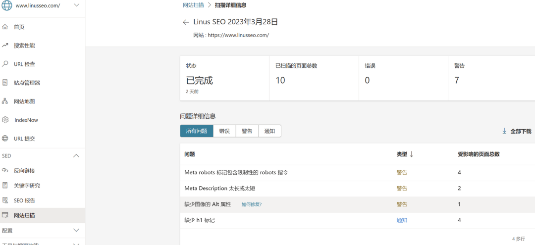 这俩其实没啥太大区别,所以我将他们放在一起说。你可以直接使用这个免费的Bing扫描工具来扫描你的网站,并且点击报告查看你网站上的问题: