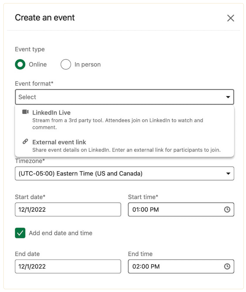 领英活动可用于推广网络研讨会、大型培训和小组讨论。如果你希望与会者直接在领英上加入,可以通过直播平台举办线上活动。在线上活动举办时,可以收集与会者的联系方式,并在活动结束后进行跟进。