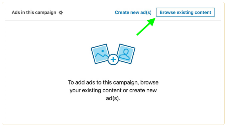 对于更详细的受众和目标选项,我们还可以利用领英活动管理(LinkedIn Campaign Manager),在广告层面,点击“浏览现有内容(Browse Existing Content)”,从参与度最高的帖子中选择推广内容。