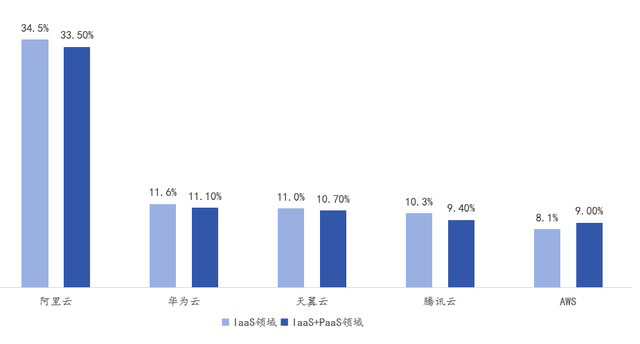 作为国内云厂商头部企业的阿里云,在IaaS领域和IaaS+PaaS领域的市场份额分别为34.6%和33.5%,以上两项排名均为业内第一,具有绝对的领先地位。